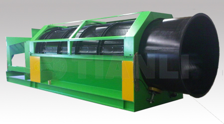 籠篩裝置傾斜安裝于機架上。電動機經減速機與滾筒裝置通過聯軸器連接在一起,驅動滾筒裝置繞其軸線轉動。當物料進入滾筒裝置后,由于滾筒裝置的傾斜與轉動,使篩面上的物料翻轉與滾動,使合格物料(篩下產品)經滾筒后端底部的出料口排出,不合格的物料(篩上產品)經滾筒尾部的排料口排出。由于物料在滾筒內的翻轉、滾動,使卡在篩孔中的物料可被彈出,防止篩孔堵塞。滾筒篩砂機、滾筒篩分機與滾筒篩的原理構造幾乎相同,是人們對它的認識和叫法上存在差異。